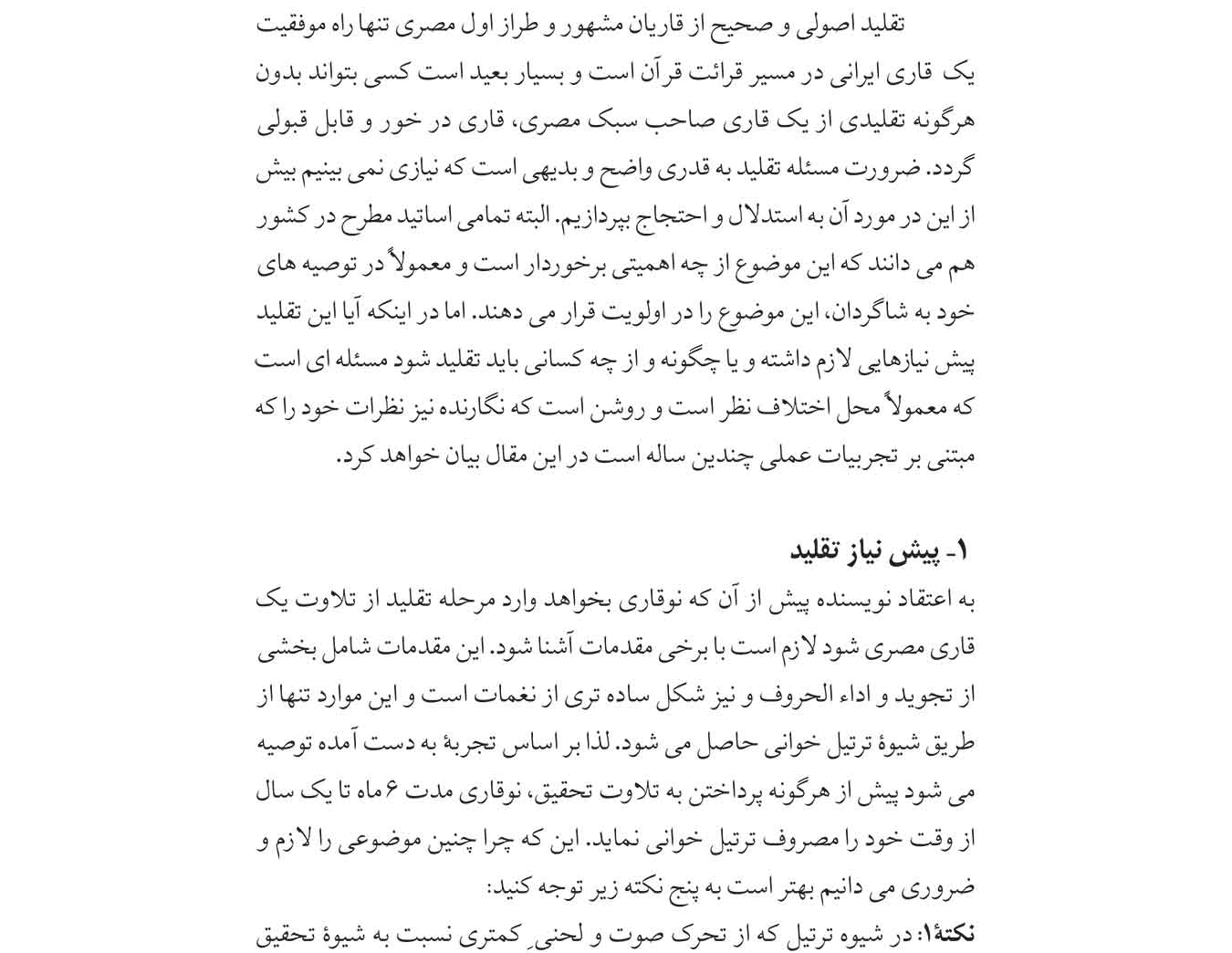 مبحث اصول تقلید گزیده ای از کتاب معماری تلاوت به قلم استاد غلامرضا شاه میوه اصفهانی است.